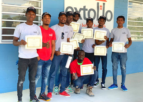 Extollo grad and now trainer, Yves Jean, led the first Masonry Level 1 class of the year. Following improvements to the masonry practical exam put in place last October, a significant improvement in wall construction was noticed.